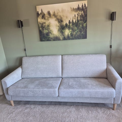 Pent brukt sofa selges, da vi har kjøp ny. Vi ville heller ha hjørnesofa. God å sitte i å pen å se til. Slitesterkt stoff. Kun ryggputene som er løse. Sofaen er ny renset. Kjøpt på Bohus.