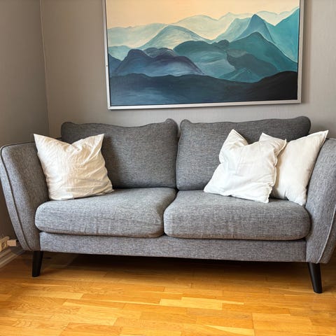 Sofaen er komfortabel, romslig og fortsatt i veldig god stand.