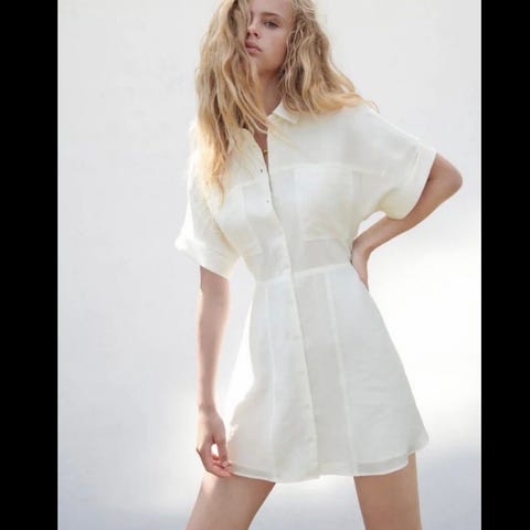 Bohemsk og romantisk H&M kjole i hvit bomull for dame i størrelse XS. Kjolen har korte ermer og løs passform. Den har snøring i utringningen foran og snor med fine perler. Lengden går omtrent til over kneet, avhengig av høyde. Ikke gjennomsiktig. Passer