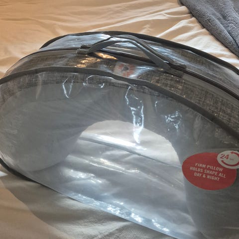 Ammepute/ gravidpute i rosa farge. Puten er formet for å gi støtte til kropp og mage, og kan brukes under graviditet eller som støttepute ved amming eller avslapning. Leveres i oppbevaringsbag.
