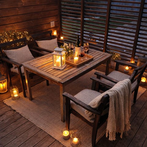 Kafesett med rundt kafébord og to stoler i teak tre. Bordet har kryssben og rund bordplate, egnet som lite spise- eller avlastningsbord på balkong, terrasse eller i hage. Stolene er sammenleggbare med lameller i sete og rygg, og er tilpasset bruk utendørs. Settet passer i mindre uteplasser der det er behov for en kompakt sittegruppe til kaffe eller enkle måltider.