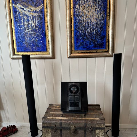 Meget velholdt Beocenter 9300. Kosmetisk omtrent uten skavanker av noe slag. Begge luker åpner/lukker som de skal. CD-spiller, radio og forsterker fungerer perfekt. Kassettspiller skal ha nye reimer. Ingen løse glassplater. Beocenter 9300 kan kobles til både passive og aktive høyttalere. Kan høres på Beolab 1.
