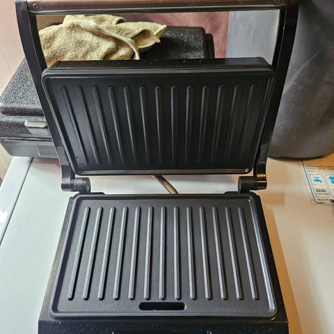Liten sandwich grill, brukt én gang. Selges da vi har ikke bruk for den. Grill platen er 27cm x15cm