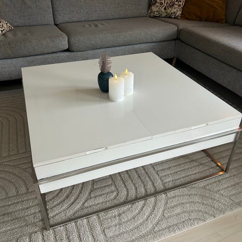 Salongbord 130x100 cm. Ordinært kirsebærfarget, malt for noen år siden. Litt bruksmerker, men ganske fint holdt. MÅ HENTES.