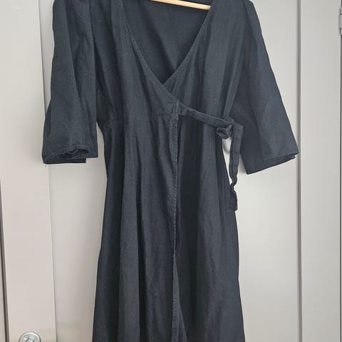 Ninepine hverdagskjole for dame i størrelse M. Kjolen er lang med smale stropper og et kroppsnært snitt. Farge grønn. Materiale i polyester, som gir et lett og glatt stoff. Egnet som hverdagskjole og til enkle anledninger.