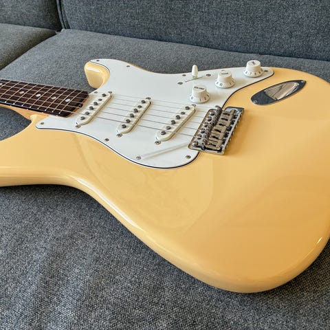 Halsen er byttet til en Fender Mexico maple neck fra 2018 (MX18-serienummer). Spiller veldig bra og føles smooth og deilig.