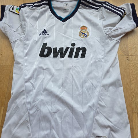 Selger en Real Madrid bortedrakt fra 2012/2013-sesongen, en klassisk drakt fra perioden da klubben hadde stjerner som Cristiano Ronaldo, Mesut Özil og Gonzalo Higuaín.