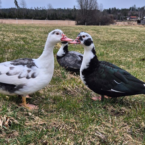 Tre kjempekoselige Moskus ender. Legger egg . Kosete. Pris pr stk. selges helst samlet da de alltid har vært sammen fra de var små