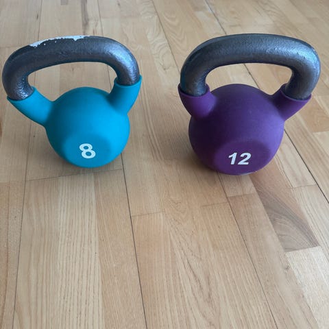 Kettlebell og manual treningsvekter 8 kg, 12 kg og 6 kg