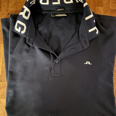 J.Lindeberg polo t-skjorte for herre i størrelse XL. Kortermet modell med krage og knappestolpe med tre knapper. Skjorten er ensfarget svart med J.Lindeberg-logo på brystet. Produsert i et glatt, lett materiale som egner seg godt til hverdagsbruk og fritidsaktiviteter.