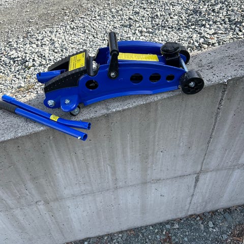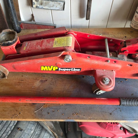 Biltema garasjejekk med løftekapasitet 2,5 tonn. Jekken er laget i stål og har hjul for enkel forflytning. Farge blå med metallfargede detaljer. Passer til løfting av personbil innenfor angitt vektgrense. Sikkerhets- og bruksinformasjon står på etiketten på jekken og bør leses før bruk.