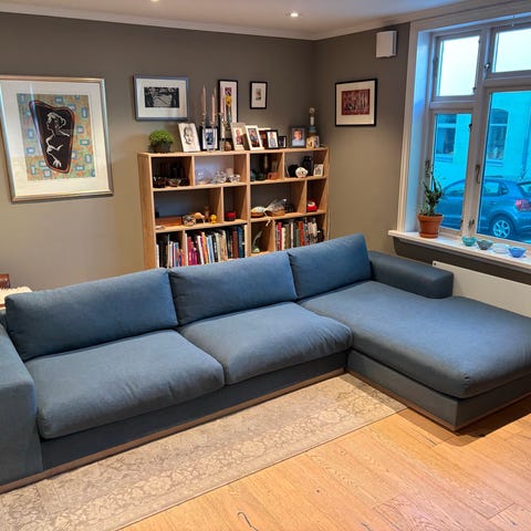 Har for salg en pent brukt Bolia salong med sjeselong høyre + poff. Dybden på sjeselong er 180cm. Her er mye sofa igjen for en overkommelig pris. Fargen er koksgrå opp mot blått, den er veldig flott og bør sees.