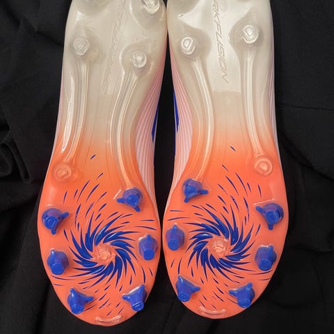 Nye tatt ut av boks men for små fotballsko.