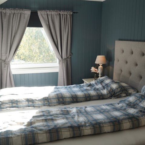 .2 stk blå gardiner, lystette fra kid. Selges 70 pr lengde
