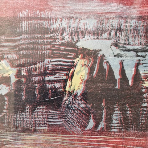 Tidlig abstrakt tresnitt av Knut Rumohr.