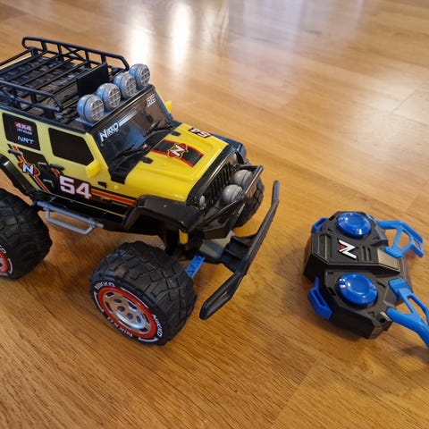 Monster radiostyrt bil i gul farge. Lekebilen er utformet som en pickup med store terrenghjul og 4x4-design. Den leveres med håndkontroller med to styrespaker. Passer som lekebil for barn som liker radiostyrte kjøretøy og billek. Strømforsyning og batteritype er ikke oppgitt.