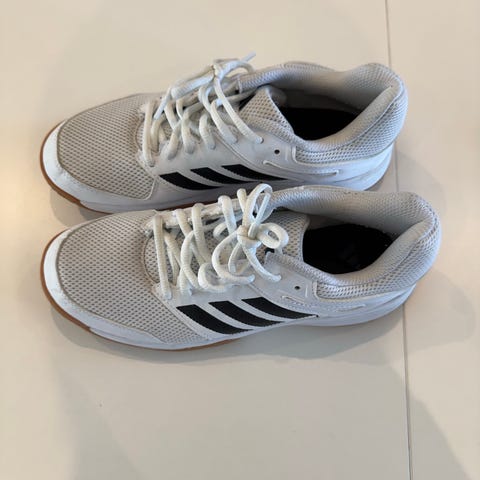 Adidas joggesko (SEGES BILLIG) i hvit farge med snøring. Skoene har overdel i tekstil og syntetisk materiale, med Adidas-logo og karakteristiske striper på sidene. Yttersålen er i gummi med mønster for grep. Passer til hverdagsbruk og lett trening.