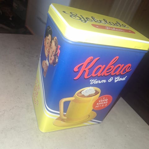 Retro plastboks fra Nidar “Sol-Kakao 550 gram”. Fin til oppbevaring eller som dekor på retro kjøkken.