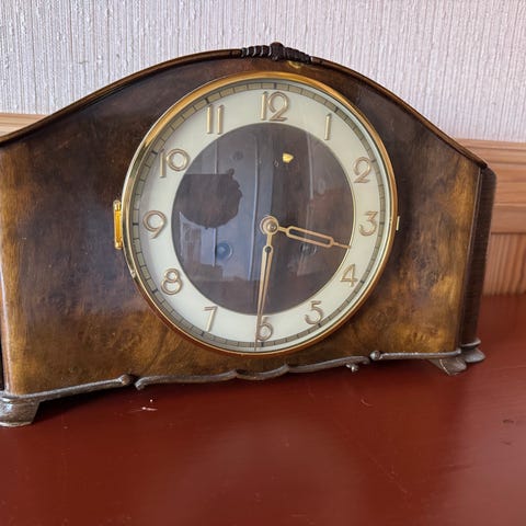 Et svært dekorativt sett som passer perfekt på skjenk, peishylle eller i klassisk interiør. Klokken har romertall og mekanisk urverk.