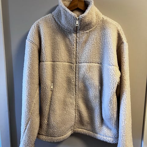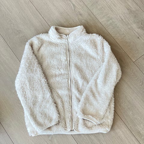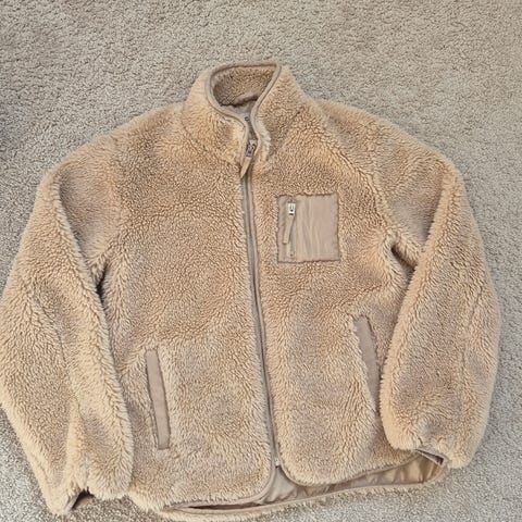 Fleecejakke i teddystoff fra Cubus. Str 134/140 i beige.