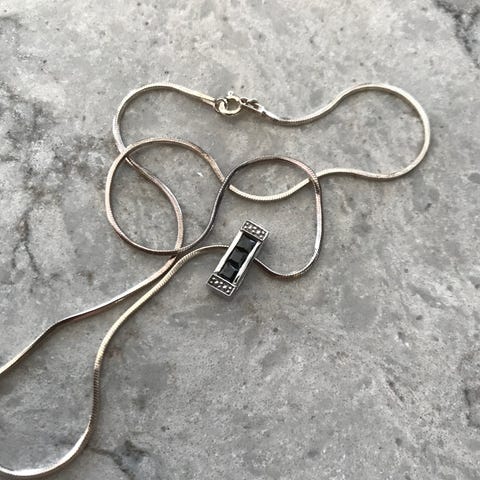 Smykkesettet består av hengende ledd med kvadratiske former.