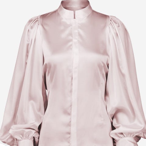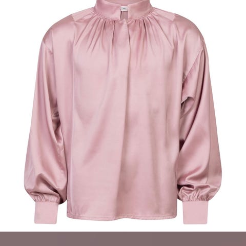 Festdraktskjorte i rosa for dame i størrelse 34/36. Blusen har høy hals, rynkedetaljer ved halsutringningen og vide ermer med mansjetter. Materialet er sateng som gir en glatt og blank overflate. Passer til bruk alene eller under ulike typer drakter og skjørt.