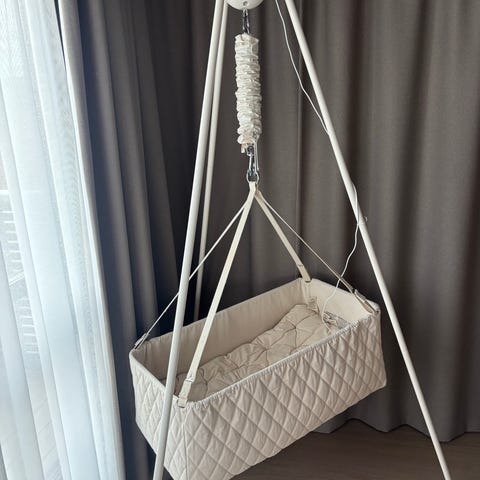 Vuggen gir en trygg og behagelig soveplass, og mange foreldre (inkludert oss) opplever at babyen sovner raskere og sover lengre i den.