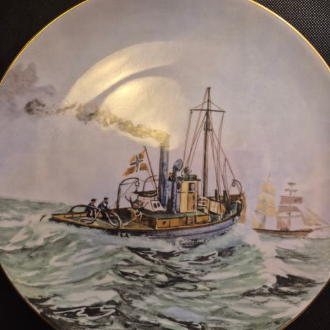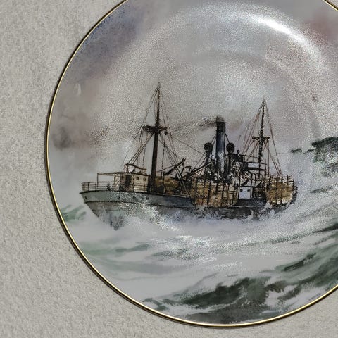 Et fint dekorasjonsobjekt for samlere av maritime motiver eller vintage veggtallerkener.