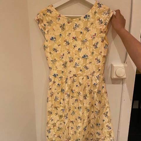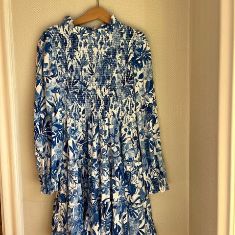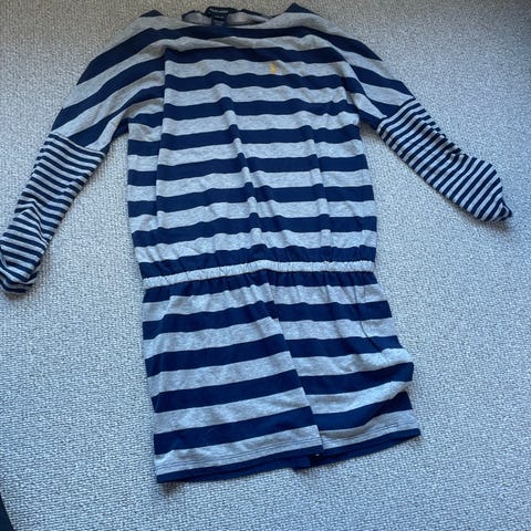 Polo Ralph Lauren kjole i størrelse 140. Erm løs modell i vevd bomull med flerfarget blomsterprint og lys krage. Kjolen har krage og knappelukking øverst, samt utsvingt skjørtedel. Materiale: 100 % bomull. Passer til hverdagsbruk og finere anledninger.