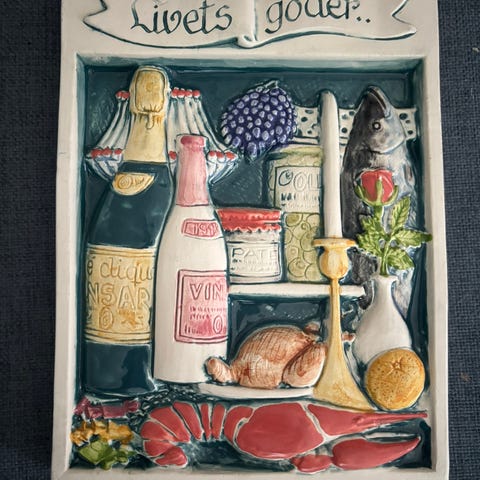Jie Gantofta Livets krydder keramikk vegg platte relieff bilde 22,5x18 cm