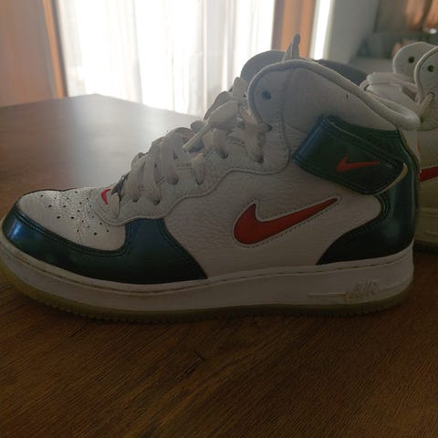 Skoene har synlig bruksslitasje, blant annet på den ene innersålen (kan evnt bare bytte såle) og tåparti. Begge tåtuppene kan enkelt limes med f.eks. superlim, men disse selges såpass billig at det må ny eier stå for selv 🤗