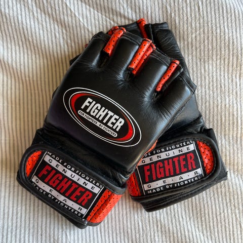 Kampsporthansker fra fighter som nesten ikke er brukt. Størrelse medium.