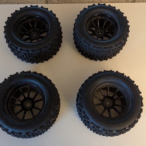 Selger et brukt sett med Arrma Kraton 6s hjul.