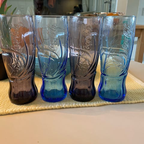 Cola glass fra Mc Donald selges. Har 9 stk. 6 i lilla og 3 i lys blå