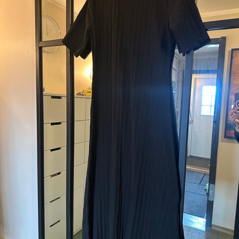 Zara Trafaluc hverdagskjole i størrelse M. Kjolen er svart med blomsterprint og er laget i viskose. Den har omslagssnitt med V-utringning, lange ermer og knytebelte i livet. Passer som hverdagskjole til dame.