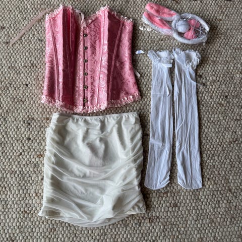 2. Korsett-skjørt (nederst): En klassisk hofteholder med snøring foran, som gjør den enkel å justere for perfekt passform. Også denne har originale klemmer for strømper.