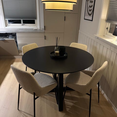 Selger også 6 stk pent brukte spisestoler fra Søstrene Grene.