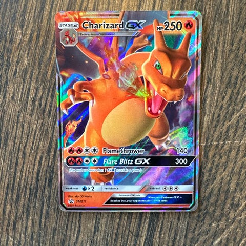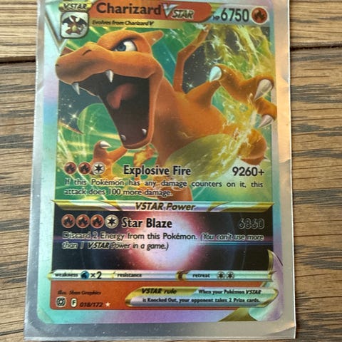 Selger en Charizard V fra settet Brilliant Stars. Kortet er i svært god tilstand med minimal kantslitasje. Det har aldri vært brukt til spill og har vært lagret i perm under tørre forhold.