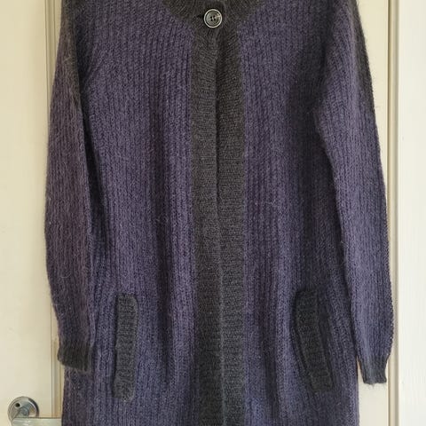 Selger en strikket lang jakke, lite brukt. Husker ikke hva garnet heter, men det er i myk ull.