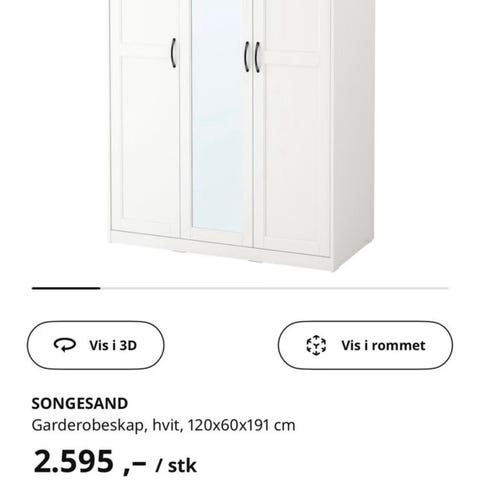 Forsand garderobe skap fra IKEA selges, skapet er meget pent brukt, skapet har mål 100*60*236cm