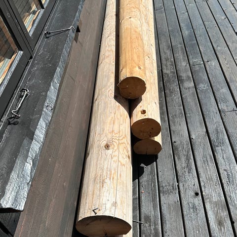 174x174 mm skåret granstokk på 4,5.m