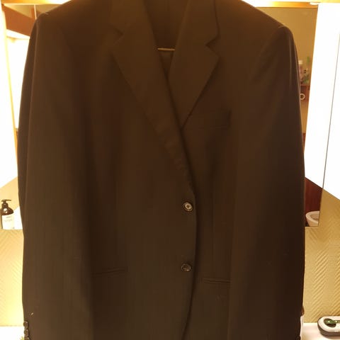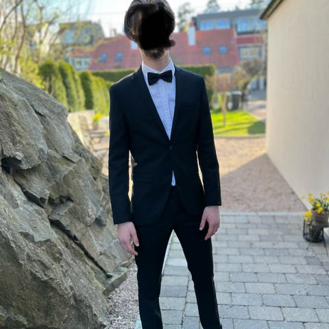 Mannen selger den nydelige smokingen sin, som kun har blitt brukt én gang i bryllupet vårt. Dressen er Skreddersydd hos made of heart i Stavanger. Ny pris med skjorte og mansjetter ca kr: 20.000,-