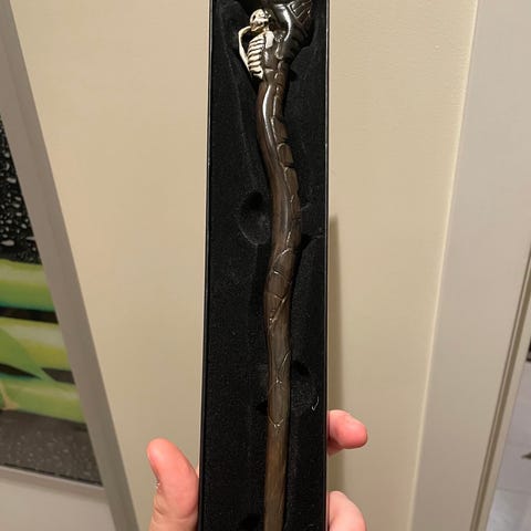 Death Eater tryllestav i brun farge. Leveres i eske med innvendig polstring tilpasset staven. Passer som samleobjekt eller rekvisitt til utkledning og temafester. Lengden er tilsvarende en standard tryllestavreplika.