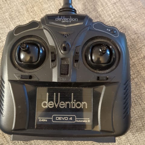Sett som på bildene, med hovedenhet, tilleggsmodul(er), strømsensor (12 V–5 V / 5 A BEC) og ledningssett. Systemet brukes til styring og overvåking av RC-modeller, med integrert OSD for visning av telemetri og flydata i videofeed.