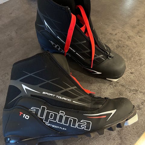 Alpina T5 Touring langrennsstøvler i svart. Gode og komfortable skisko selges billig. Bare brukt noen så ganger, nesten som ny.