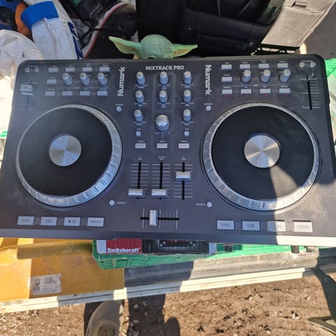Pioneer DJ-kontroller i svart med to store joghjul og innebygde miksekontroller.