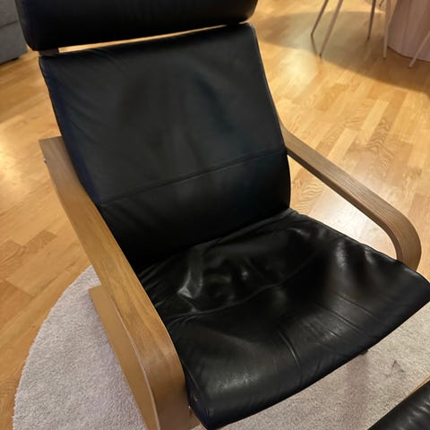 Lenestol fra IKEA i god stand, pris kan diskuteres🤗Den kan lenes bakover og er av skinn, er brukt men er i god stand.