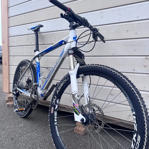 Rå terrengsykkel med full karbon ramme, hjul, styre, styrepinne osv. Gjennomført XTR gir og bremser, øverste klasse Fox framdemper med låsing osv. Sykkel passer personer med lenge mellom ca. 178-188cm +/-. Se siste bilde for full spec. Her har du de råeste delene i alle ledd. Ny pris ca. 65.000,-