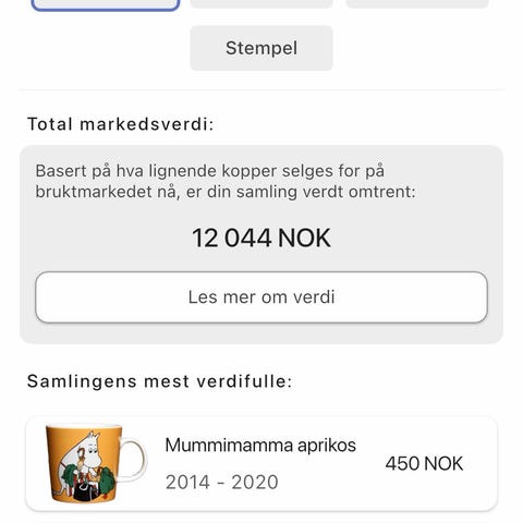 Jeg tar utgangspunkt i prisene fra moomugs, men alt kan diskuteres ☺️ ved salg av flere kopper blir vi nok enig om en god pris!