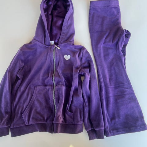 To fine sett med bukse og hettejakke i myk velur fra Lindex, str. 104.